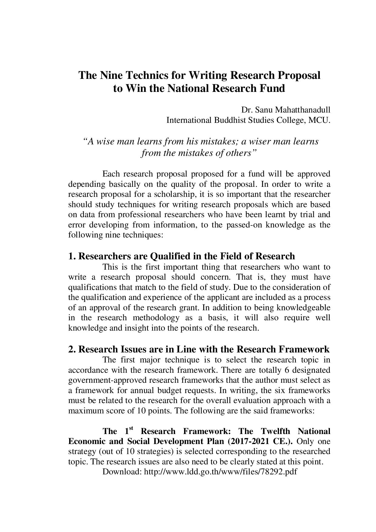 » The Nine Technics for Writing Research Proposal to Win the National Research Fund